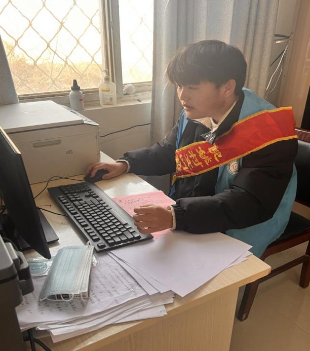 圖為實踐隊員幫助社區(qū)工作人員整理居民信息材料
