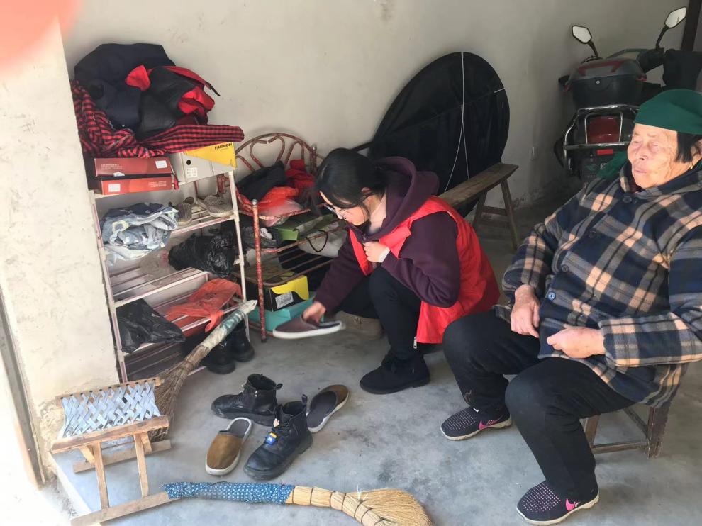 圖為實(shí)踐隊(duì)員在老人家中幫忙打掃衛(wèi)生
