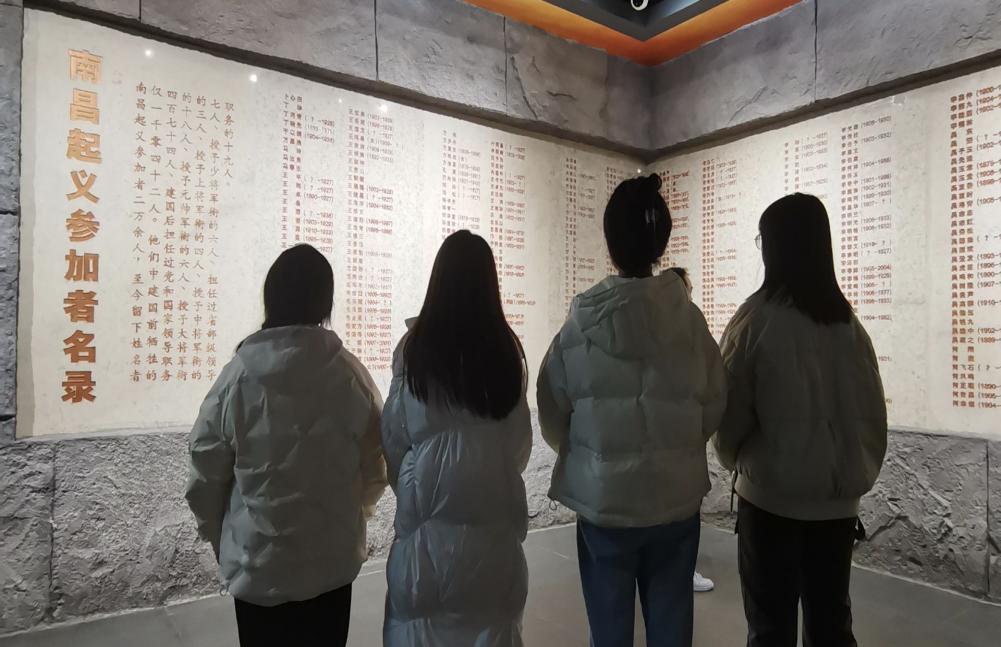 圖為實(shí)踐隊(duì)員在參觀南昌起義參加者名錄