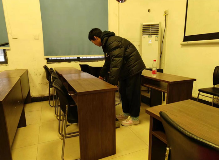 志愿者們清理垃圾并還原座位