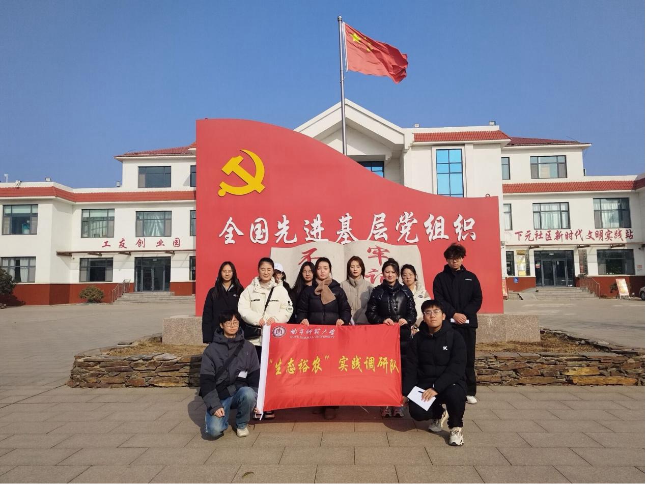 圖為實(shí)踐隊(duì)在下元村村委會(huì)前合影。中國青年網(wǎng)通訊員 李楠 供圖