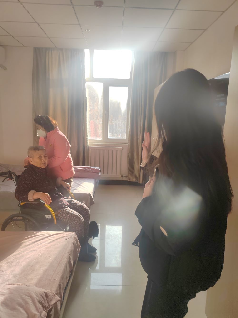 活動(dòng)開(kāi)始時(shí),我們?cè)陴B(yǎng)老家園院長(zhǎng)的帶領(lǐng)下對(duì)院內(nèi)情況進(jìn)行了初步了解。首先,走進(jìn)大廳,我們立刻看到墻上醒目的大字:“讓所有老年人都能有一個(gè)幸福美滿的晚年。”民生保障著重于“一老一幼”,各地區(qū)各部門都在努力增加養(yǎng)老托育普惠性服務(wù)供給,以確保“老有所養(yǎng)、老有所依、老有所樂(lè)、老有所安”得到進(jìn)一步實(shí)施。紅山博愛(ài)養(yǎng)老家園積極響應(yīng)這一政策,不斷完善和細(xì)化園內(nèi)設(shè)施,以確保每位老人在此都能享受到幸福的晚年生活。