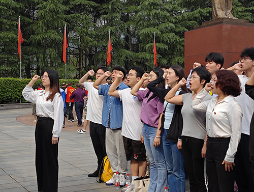 在毛澤東廣場,黨員們肅立在毛澤東銅像前,面對鮮紅的黨旗,堅定地舉起右手,重溫入黨誓詞,莊重宣誓。錚錚的誓言回蕩在廣場上空,凝聚著黨員們弘揚革命傳統(tǒng),擔當新使命的初心。