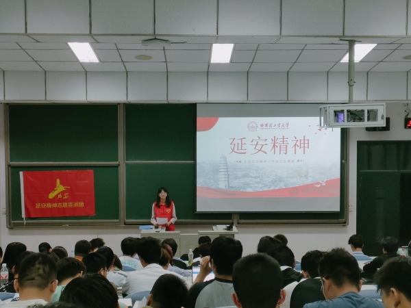 隨后,宣講團(tuán)成員李健平結(jié)合團(tuán)隊(duì)2022年延安實(shí)踐經(jīng)歷及歷史史實(shí)回顧了吳起鎮(zhèn)戰(zhàn)役、整風(fēng)運(yùn)動(dòng)、成立中央軍委機(jī)關(guān)、召開文藝座談會(huì)、中共七大等一系列內(nèi)容,講述了延安的主要革命歷程,通過視頻形式生動(dòng)再現(xiàn)了延安多個(gè)時(shí)期的重大歷史場(chǎng)景。宣講團(tuán)成員趙靜怡就延安精神的豐富內(nèi)涵展開介紹,延安精神主要內(nèi)容包括堅(jiān)定正確的政治方向;解放思想、實(shí)事求是的思想路線;全心全意為人民服務(wù)的根本宗旨;自力更生艱苦奮斗的創(chuàng)業(yè)精神。宣講團(tuán)成員王緒喆分享了延安精神的重要性和現(xiàn)實(shí)意義。延安精神永放光芒,延安精神是中國共產(chǎn)黨人精神譜系的重要組成部分,是在中國革命最關(guān)鍵的轉(zhuǎn)折時(shí)期鑄就而成的。延安精神凝聚著中國共產(chǎn)黨人的初心和使命,它是中國共產(chǎn)黨人干事創(chuàng)業(yè)、書寫社會(huì)主義現(xiàn)代化建設(shè)精彩華章的思想指南。