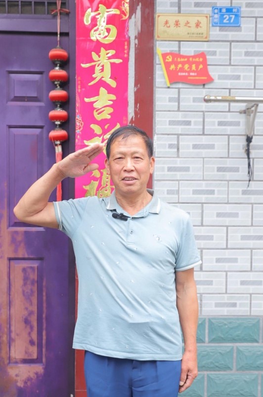 站在“光榮之家”“共產(chǎn)黨員戶”銘牌前,面對實踐團的鏡頭,鄭庭石舉起手敬禮,仿佛回到22歲時那個意氣風(fēng)發(fā)的少年模樣,戰(zhàn)場上的轟鳴在他耳朵里留下痕跡,歲月走過他皮膚的每一處褶皺。鄭庭石曾獲營嘉獎一次,在面對團員們時,他總念叨著和平的來之不易。如今國泰民安,離不開他們的奮斗與犧牲,也更需要青年一代的接續(xù)奮進,為中國式現(xiàn)代化挺膺擔(dān)當(dāng)。