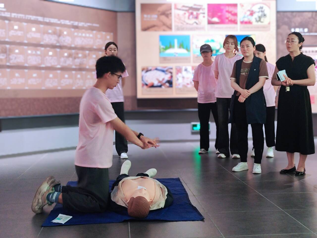 最后,劉志遠(yuǎn)同學(xué)在新鄉(xiāng)市史志館四樓大廳通過(guò)實(shí)際案例為同學(xué)們和史志館的工作人員講解了實(shí)施心肺復(fù)蘇的必要性和重要性,詳細(xì)講解了心肺復(fù)蘇術(shù)的操作流程和注意事項(xiàng),隨后使用QCPR模擬人進(jìn)行現(xiàn)場(chǎng)的實(shí)操演示,并邀請(qǐng)?jiān)趫?chǎng)人員進(jìn)行實(shí)操互動(dòng)。“怎樣判斷患者有無(wú)反應(yīng)和意識(shí)?正確的心臟按壓部位是哪里?進(jìn)行人工呼吸的時(shí)候?yàn)槭裁匆壤睔獾溃?hellip;.”劉志遠(yuǎn)圍繞“急救科普”主題,通過(guò)專業(yè)的急救培訓(xùn)讓現(xiàn)場(chǎng)每一位群眾都聽(tīng)得懂、學(xué)得會(huì)、記得住、用得上,真正做好“自己健康第一責(zé)任人”,突發(fā)事件的“第一反應(yīng)者”和“第一施救者”。