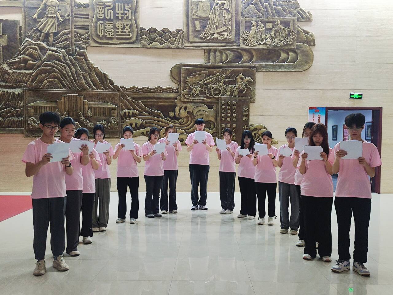 隨后,在隊(duì)長(zhǎng)楊宇哲的帶領(lǐng)下,大家集體朗誦《牧野長(zhǎng)歌》,“聽(tīng)著歌聲成長(zhǎng),凝望紅旗長(zhǎng)大;我所追隨的光,是五星紅旗閃爍的光;我所信仰的顏色,是中國(guó)文化燦爛的紅……”同學(xué)們時(shí)而娓娓道來(lái),深情歌頌;時(shí)而致敬英雄,感人肺腑;時(shí)而錚錚誓言,激昂振奮。