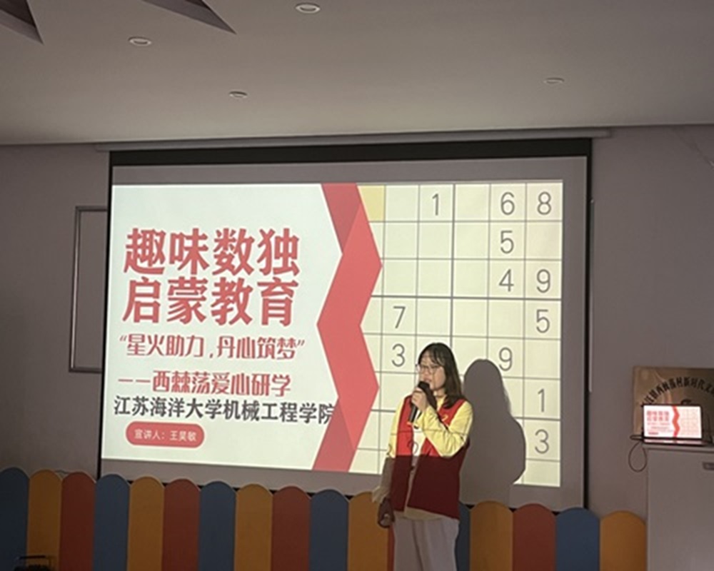 7月4日,江蘇海洋大學機械工程學院“星火助力,丹心筑夢”——西棘蕩愛心研學暑期社會實踐團隊在西棘蕩村開展趣味數(shù)獨啟蒙教育課程。此次課程由教學組組長王昊敏進行宣講。