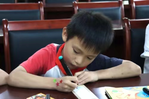 為了進(jìn)一步鼓勵(lì)小朋友們?cè)陂喿x中保持專(zhuān)注與耐心,實(shí)踐團(tuán)成員們還創(chuàng)意性地設(shè)置了書(shū)簽制作的環(huán)節(jié)。小朋友們拿起五彩斑斕的畫(huà)筆,在小小的書(shū)簽上盡情揮灑創(chuàng)意與想象,每一枚書(shū)簽都承載著他們對(duì)閱讀的熱愛(ài)與期待。這些獨(dú)一無(wú)二的書(shū)簽,不僅成為了他們閱讀旅程中的忠實(shí)伴侶,更是他們心靈手巧的見(jiàn)證。