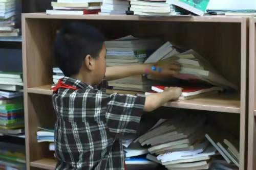 在活動(dòng)的另一重要環(huán)節(jié)中,實(shí)踐團(tuán)成員引領(lǐng)小朋友們親自動(dòng)手,共同整理圖書(shū)角,讓這片知識(shí)的海洋變得更加有序而溫馨。在成員們的耐心指導(dǎo)下,小朋友們不僅積極參與,還充分發(fā)揮了他們的想象力和創(chuàng)造力,將書(shū)籍以獨(dú)特的方式分類(lèi)整理。經(jīng)過(guò)所有人的共同努力,圖書(shū)角煥發(fā)出全新的面貌,書(shū)籍從原先的雜亂無(wú)章變得井然有序,每本書(shū)都找到了它在書(shū)架上完美的歸屬。這一刻,小朋友們臉上洋溢著滿足與自豪的笑容,圖書(shū)角成為了他們心中更加珍貴的閱讀樂(lè)園。