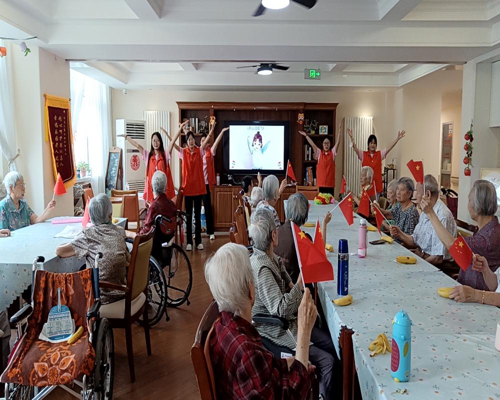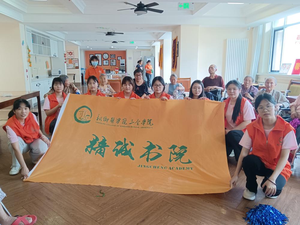 與此同時,老人們陸續(xù)結(jié)束了午睡并來到了大廳,我們攜帶假人模型向老人們介紹了心肺復蘇等急救宣傳。隨后我們與老人們一起做手工,折花。為了照顧那些行動不便的老人,養(yǎng)老院的工作人員給我們分派了樓層,我們一層兩三個人,有教老人跳手勢舞的,有教老人做手工的。除了交流,我們還參與了一些為老人服務的活動。有的同學為老人修剪指甲、理發(fā);有的同學則陪伴老人散步、聊天;還有的同學組織老人表演了節(jié)目,有位老人站在舞臺上,她的嗓音雖然帶著歲月的滄桑,但依舊清晰而富有感染力,每一句歌詞都仿佛是從心底流淌出的情感,使人沉浸其中。