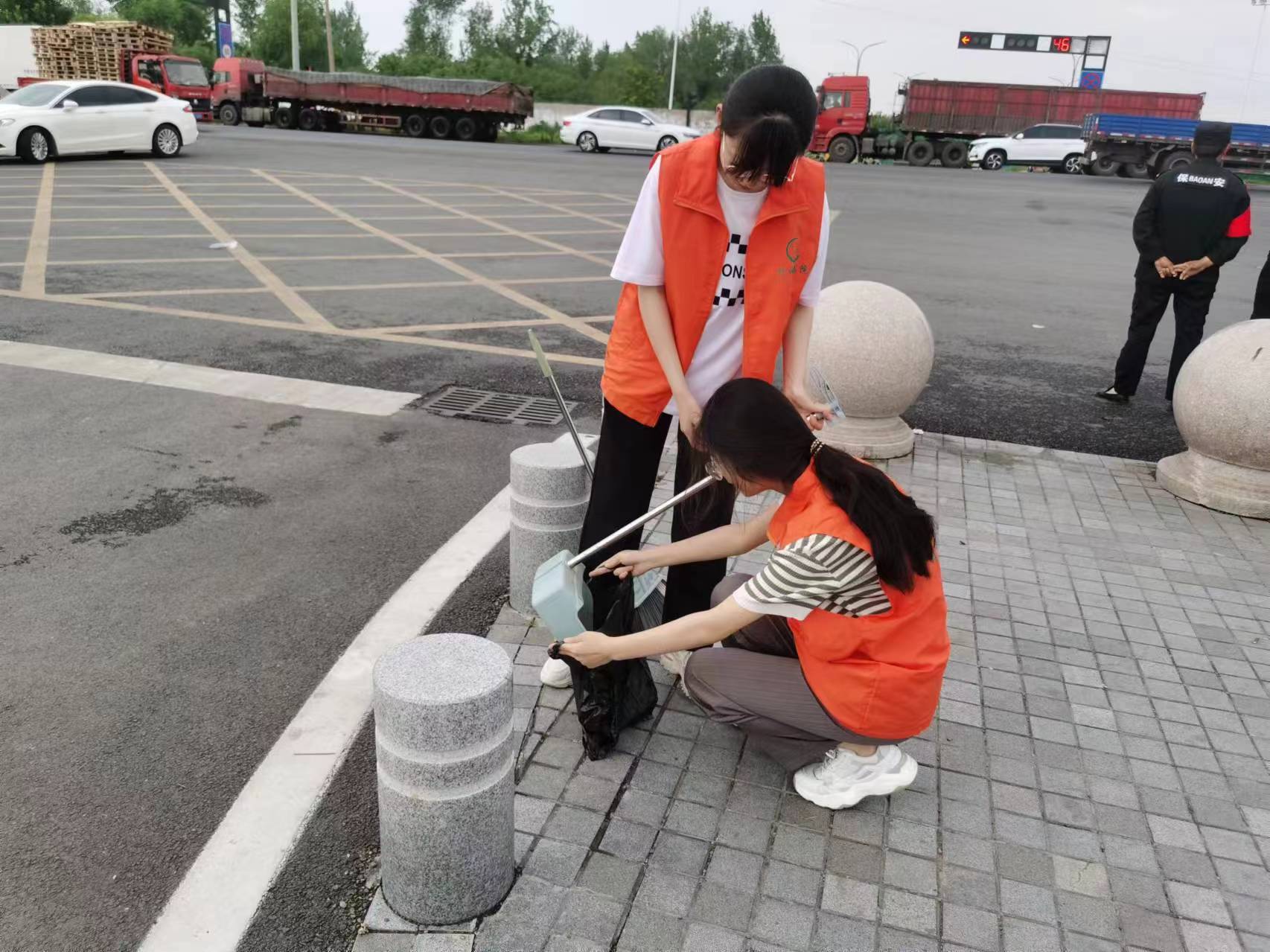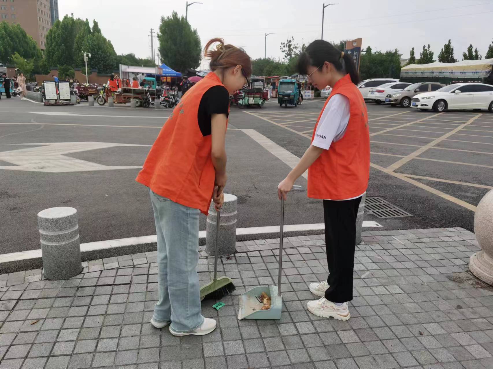 活動伊始,在環(huán)保宣傳區(qū),居民們可以了解到垃圾分類、節(jié)能減排、綠色出行等環(huán)保知識,加深對環(huán)保理念的理解。在隊長王淼的帶領(lǐng)下我們也幫助居民們打掃了小吃街道并且?guī)椭焉y的非機(jī)動車擺放整齊,教居民們做好垃圾分類。