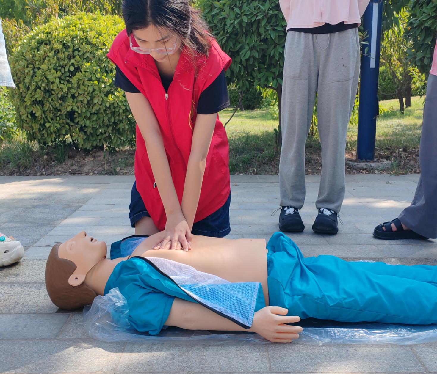接著,在急救宣傳區(qū),掌握急救知識的馮若晴、杜冰燕、員艷同學(xué)為居民們講解了心肺復(fù)蘇、人工呼吸、海姆立克急救法等急救技能,并通過模擬演練讓居民們親身體驗了急救過程。