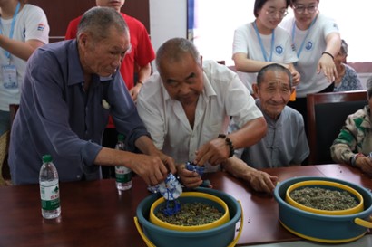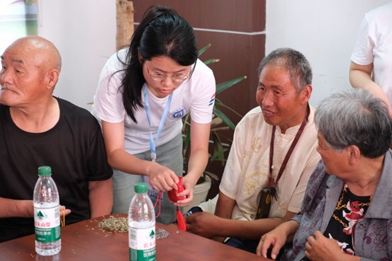 為了讓老人們更加了解中醫(yī)藥文化,結(jié)合老人的生活常識(shí)和需要,實(shí)踐團(tuán)隊(duì)精心策劃了“制作手工香囊”活動(dòng),帶來(lái)了諸多香囊空袋和帶有一定驅(qū)蚊、安眠的中草藥,陪同老人一起制作香囊,讓老人們體會(huì)到中醫(yī)藥文化與現(xiàn)實(shí)生活的密切關(guān)系,也切實(shí)發(fā)揮中醫(yī)藥的效用。