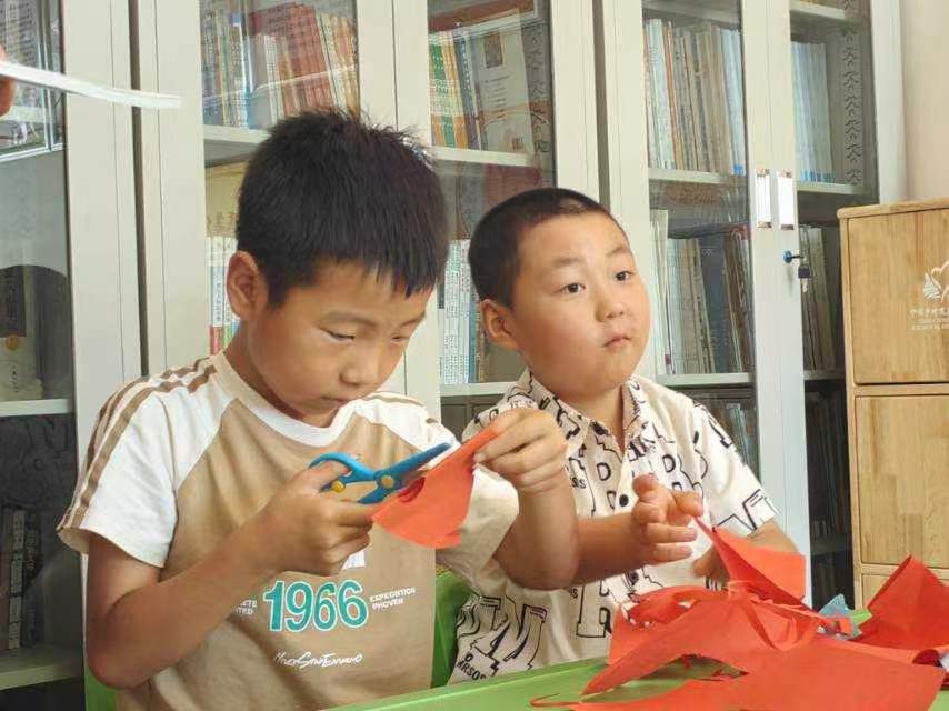 開班儀式落下帷幕后,志愿者們專心投入到了為孩子們準備的一系列豐富多彩的課程開展中。在剪紙課上,孩子們的小手靈巧地在紙上穿梭,刻畫出了一幅幅生動的圖案,每一次切割都透露出他們對美的創(chuàng)作與認識。