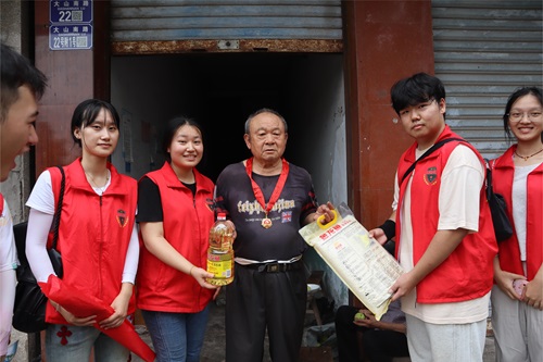 宣講結(jié)束后,實踐團還跟隨社區(qū)工作人員,對社區(qū)內(nèi)的特殊人群進行了親切慰問。他們走進這些家庭,送上溫暖的問候和實用的生活用品,用鏡頭記錄下了一個個溫馨感人的瞬間。其中,訪問一位擁有58年黨齡的老人的經(jīng)歷尤為難忘。盡管歲月在他的臉上刻下了痕跡,但那份屬于黨員的堅韌與自豪卻從未減退。他的話語間透露出對黨和國家的無限忠誠與熱愛,那雙炯炯有神的眼睛仿佛穿越了時空,訴說著過往的輝煌與成就。實踐團的成員們深受感動,紛紛表示要繼承和發(fā)揚這種精神,為實現(xiàn)中華民族的偉大復(fù)興貢獻自己的力量。