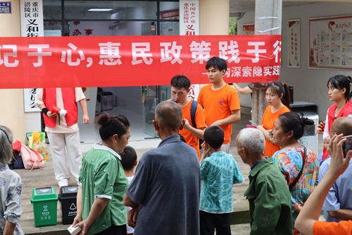 恰逢當(dāng)?shù)刳s集的日子,街道兩旁熱鬧非凡,人聲鼎沸,各式各樣的攤位與來來往往的村民構(gòu)成了一幅生動的市井畫卷。實踐團的成員們沒有錯過這個絕佳的機會,他們身著統(tǒng)一的服裝,面帶微笑,穿梭在人群中,如同夏日的清風(fēng),為每一位駐足的村民耐心講解國家最新的惠民政策。從醫(yī)療保險到養(yǎng)老保障,從教育補貼到農(nóng)業(yè)扶持,他們用通俗易懂的語言,將復(fù)雜的政策條文轉(zhuǎn)化為貼近生活的實例,讓村民們聽得懂、記得住、用得上。