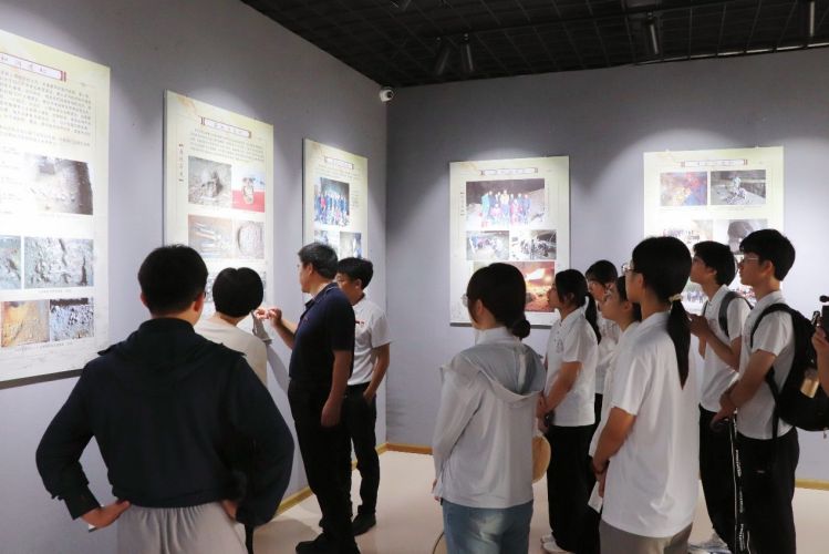 博物館參觀結(jié)束后,隊員們來到奇和洞古人類遺址(喀斯特溶洞)實地考察。在帶隊老師們的指導(dǎo)下,隊員們從歷史與地理學(xué)科相融合的角度對遺址及其周邊環(huán)境進行研究。實踐隊隊員帶著古人為什么選擇奇和洞居住與生活、在奇和洞以外的區(qū)域是否還有奇和洞人的分布等疑問,在遺址內(nèi)部仔細(xì)觀察古人類的生活空間布局,探尋古人類當(dāng)時的生活狀態(tài)。隨后,實踐隊來到洞外,考察古人類生活范圍的地貌、水文、氣候、植被等自然地理環(huán)境,考察奇和洞人的生計生業(yè)模式,一幅幅古人類采集野果和狩獵的場景仿佛就在眼前。最后,考察隊在周圍環(huán)境采集巖石標(biāo)本、地層沉積物樣品以及洞前河水標(biāo)本,以期進一步探究奇和洞人的文化密碼。