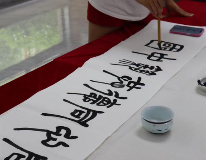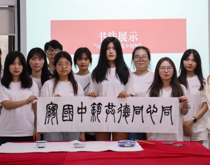 在書法展示環(huán)節(jié),書法專業(yè)的同學揮毫潑墨,以“同心同德共筑中國夢”這一力透紙背的佳作,完美融合了對社會實踐活動的深刻感悟。這不僅是美院學子藝術造詣的一次展現(xiàn),更是一次心靈的共鳴,是對未來發(fā)展的美好期許,展現(xiàn)了美院學子對中國特色社會主義政治制度的堅定信仰與對未來共筑中國夢的無限憧憬。