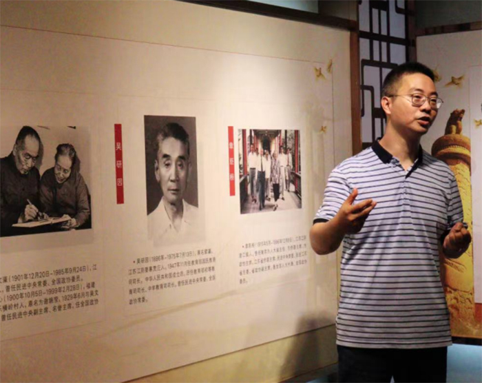 通過秘書長的講述,我們還對兩位和南師有著不解之緣的巨擘——呂斯百和吳貽芳有了更深的了解。無論是出生于江陰的呂斯百,還是身為民進會員的老校長吳貽芳,都是民進精神的生動體現(xiàn)。呂斯百先生的藝術作品,如同民進先驅們心中的火焰,照亮了藝術探索的道路,指引著我們美院的學子;而吳貽芳老校長“厚生”的教育理念,與民進先驅們?yōu)槊裾埫⑹钢静挥宓那閼丫o密相連,滋養(yǎng)了一代又一代學子的心田,為社會進步注入了不竭的動力。