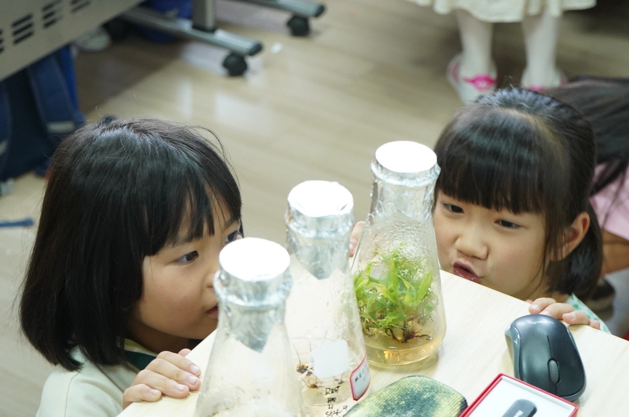 除了生長在培養(yǎng)瓶中的轉(zhuǎn)基因馬來甜龍竹的組培苗,實踐團成員還以圖片的形式向同學們展示了轉(zhuǎn)基因馬來甜龍竹組培苗制作的景觀瓶以及已成功馴化栽種在花盆中的轉(zhuǎn)基因馬來甜龍竹,向同學們展示了一個想法,變成實驗室中成功的紫色轉(zhuǎn)基因再生苗,再變成生活中的盆栽、景觀瓶的過程,詮釋了一個從不普通到普通的轉(zhuǎn)變,以此來告訴同學們科技能走進生活,也將走進生活。