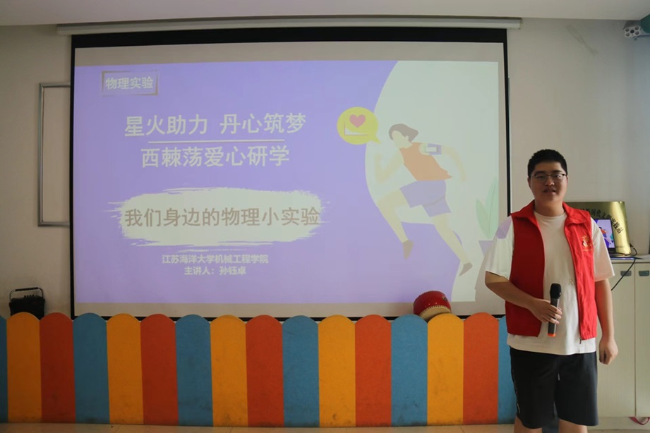 7月10日,江蘇海洋大學機械工程學院“星火助力,丹心筑夢”西棘蕩愛心研學暑期社會實踐團隊在西棘蕩村開展“我們身邊的物理小實驗”科普課程。本次活動由領隊孫鈺卓擔任主講。