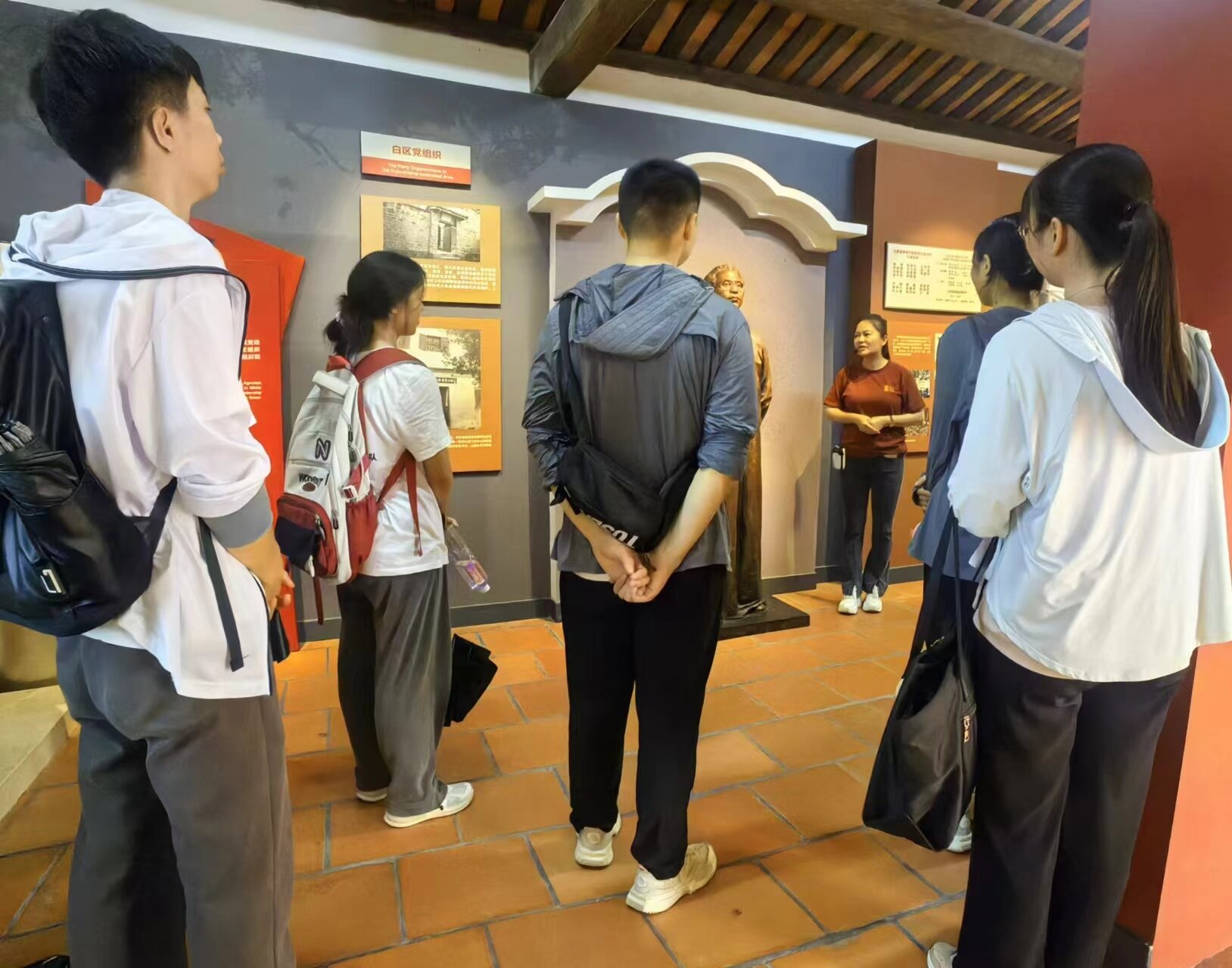 第二站,實踐隊隊員們參觀了“獨腳鶴拳非遺中心”——中共福建臨時省委舊址,認(rèn)真聆聽講解員講述紅軍在閩南地區(qū)波瀾壯闊的抗戰(zhàn)歷程:從紅軍克服重重困難挺進(jìn)閩南,到閩南人民積極響應(yīng)黨的號召,參軍參戰(zhàn),支援前線,與紅軍攜手并肩,共同抵御外敵,用血肉之軀筑起了一道堅不可摧的鋼鐵長城。