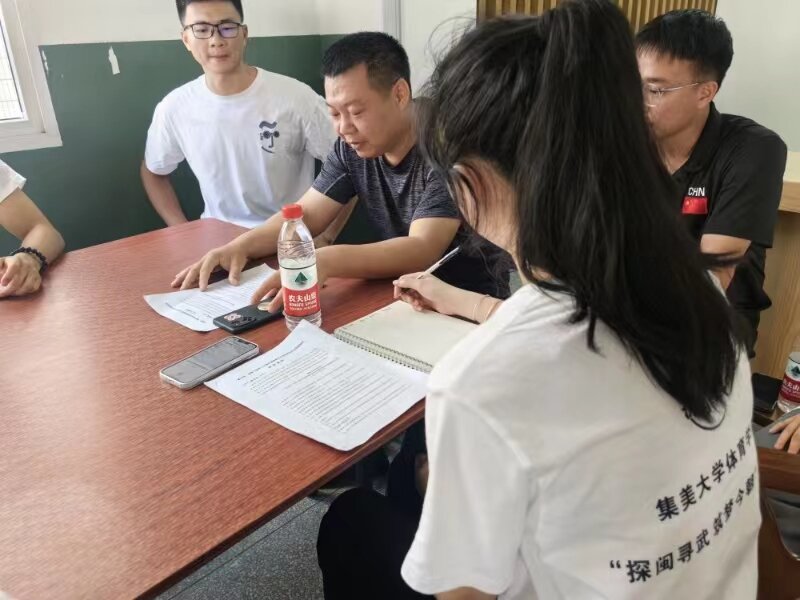 圖為實踐隊隊員對漳州獨腳鶴拳傳承人進(jìn)行專訪 陳靜瑩攝