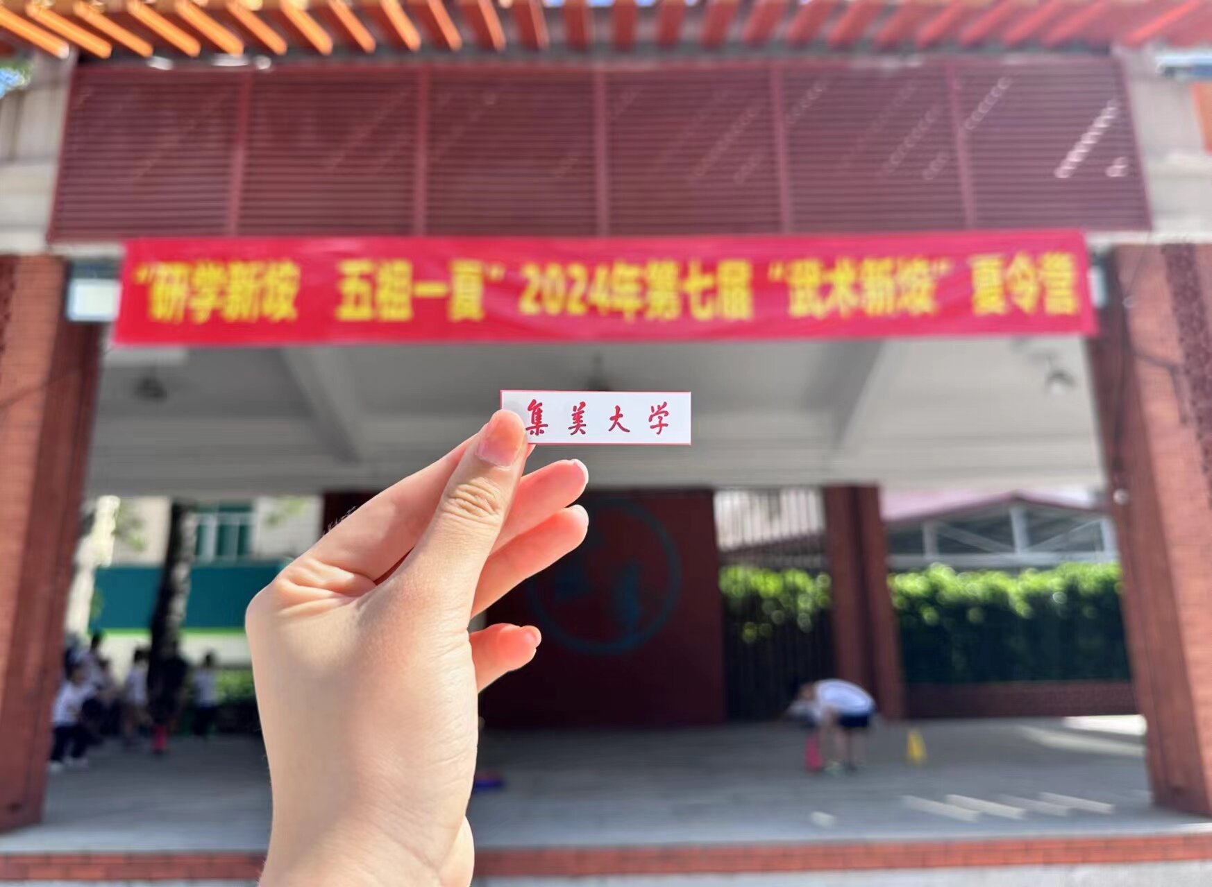 圖為集美大學(xué)校牌與夏令營橫幅合照 施昕怡攝