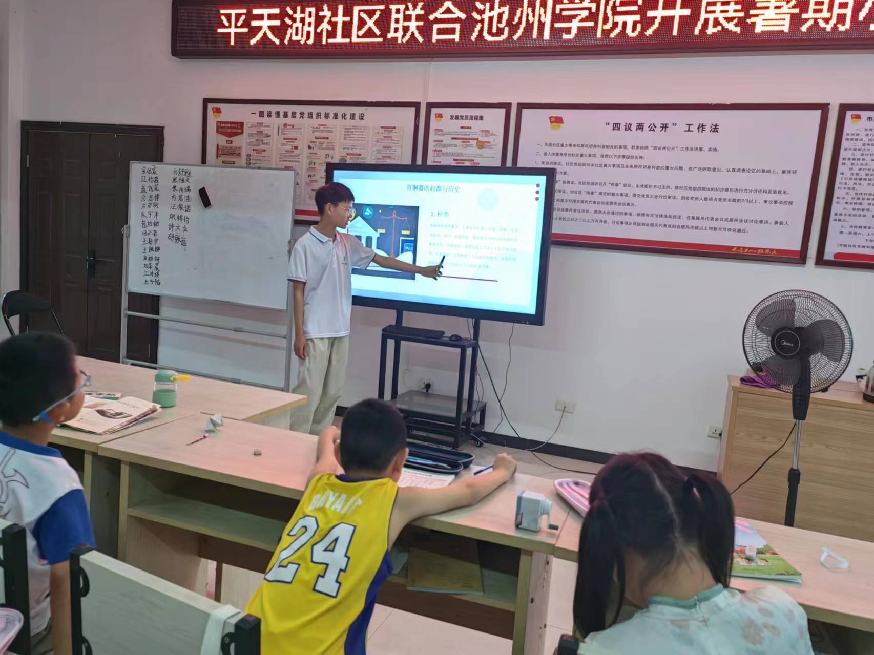 為了讓學(xué)生們感受中華青銅器文化,池州學(xué)院機電工程學(xué)院赴“田間課堂”實踐團在2024年7月13日,走進了平天湖社區(qū),開展了一場主題為“探索古代青銅器”的教育活動。此次活動旨在向小學(xué)生們介紹中國古代青銅器的文化和歷史價值,以及其在中國藝術(shù)史上的重要地位。