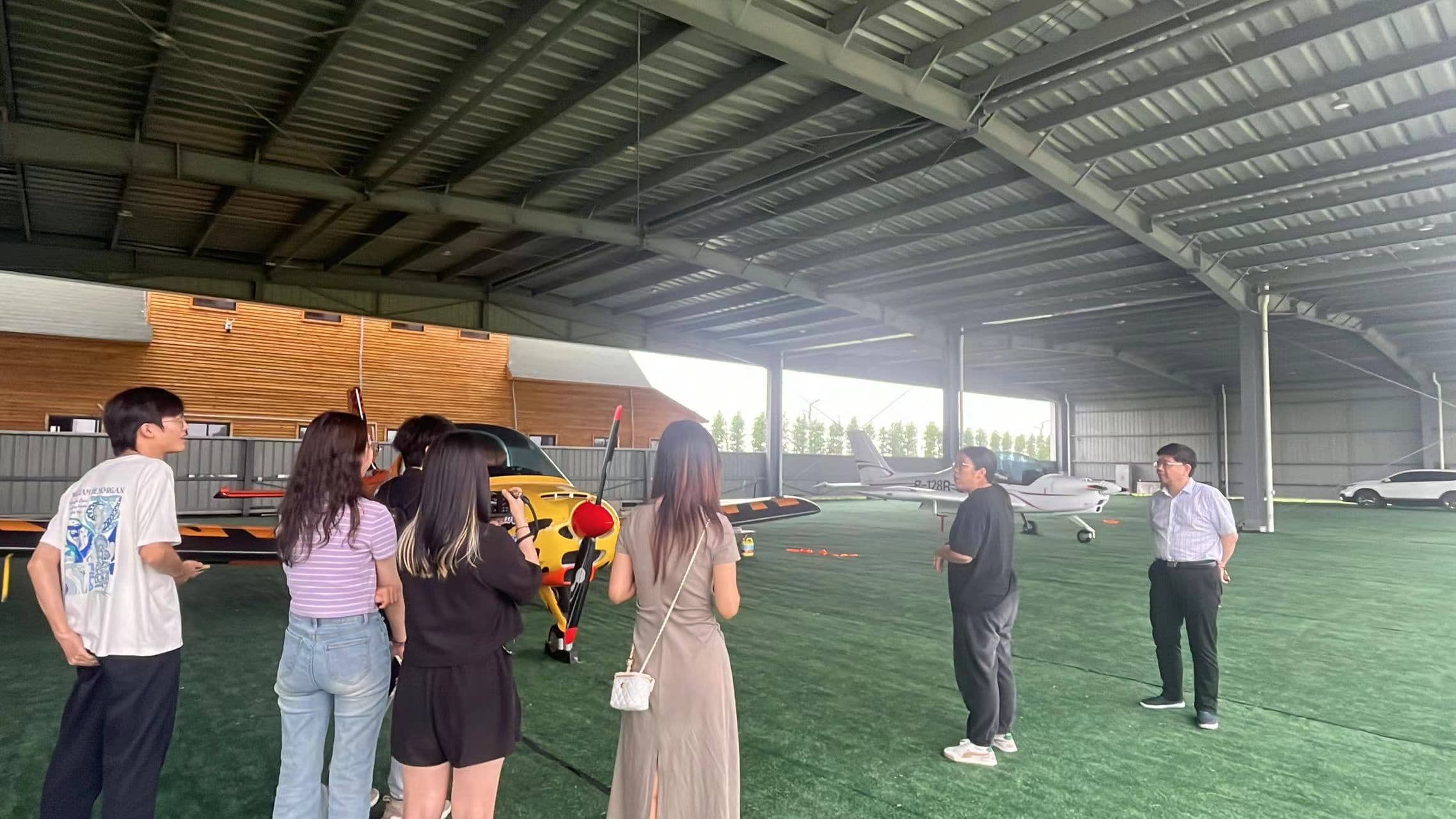 圖為團隊成員參觀平園池村鄉(xiāng)村旅游飛行體驗基地,通訊員黃浚哲攝