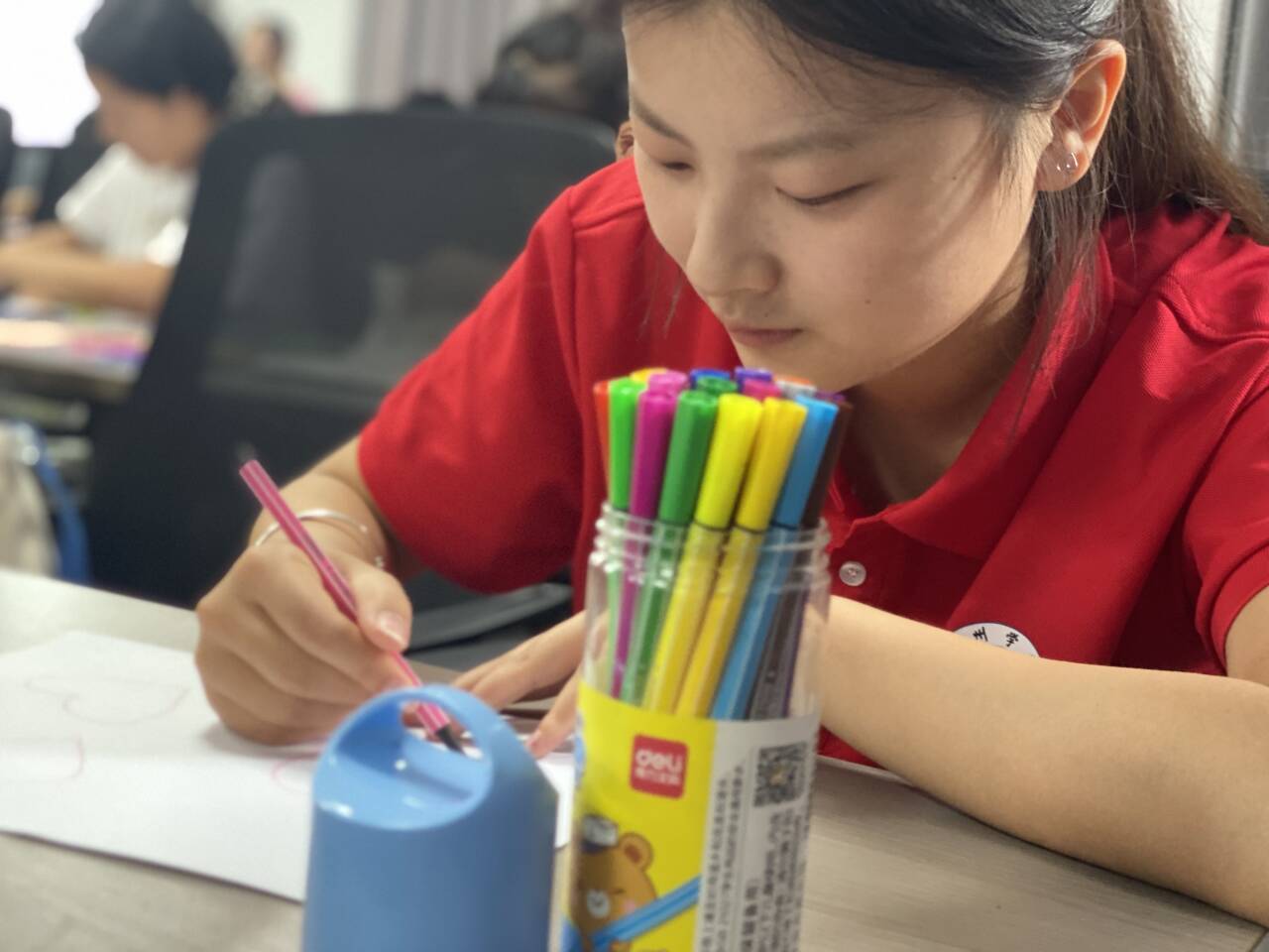 丹青吐秀碧綠前,墨彩飄香咫尺間。為推進(jìn)藝術(shù)教育工作,豐富文化活動,激發(fā)學(xué)生們的藝術(shù)興趣和想象力,提高他們的藝術(shù)實踐創(chuàng)作能力,2024年7月13日,“微芒成陽”實踐團(tuán)成員圍繞“童夢探奇 紙間躍然”這一中心開展美術(shù)課。