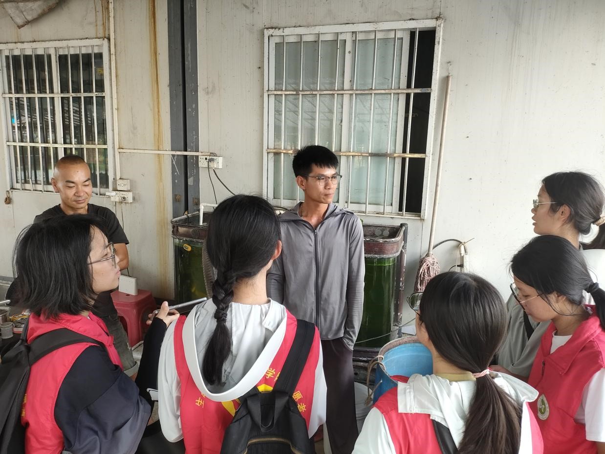 實(shí)踐團(tuán)成員采訪養(yǎng)殖場長冼先生