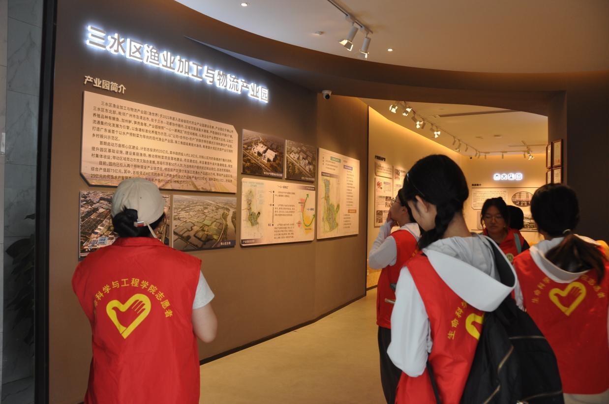 在展覽館內(nèi),同學(xué)們率先踏入了漁業(yè)產(chǎn)業(yè)發(fā)展歷程展區(qū),深入探索了三水區(qū)漁業(yè)加工與物流產(chǎn)業(yè)園(即“漁世界”)從初創(chuàng)到今日輝煌的演變軌跡。園區(qū)聚焦于優(yōu)質(zhì)淡水漁業(yè)的核心產(chǎn)業(yè),將構(gòu)建現(xiàn)代化漁業(yè)全產(chǎn)業(yè)鏈作為重要基石,以水產(chǎn)預(yù)制菜的發(fā)展為導(dǎo)向,并將多元化融合作為推動(dòng)產(chǎn)業(yè)革新的關(guān)鍵策略。展區(qū)內(nèi),圖文并茂的資料與實(shí)物展示交相輝映,生動(dòng)地勾畫出了漁業(yè)產(chǎn)業(yè)波瀾壯闊的變革歷程與持續(xù)的發(fā)展活力。