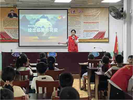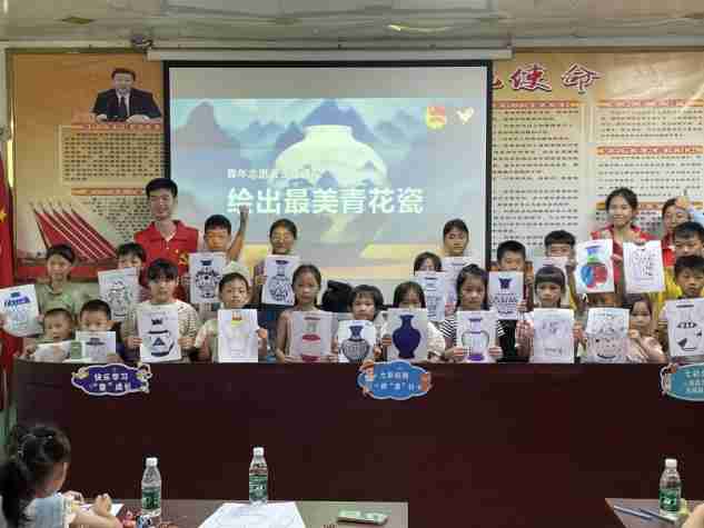 隨后,團(tuán)隊成員黃華欣帶領(lǐng)孩子們了解我國的青花瓷,同他們講解青花瓷的發(fā)展歷史、特點(diǎn)。通過青花瓷圖畫的課程,培養(yǎng)孩子們的動手能力,提高他們的文化審美,同時也讓孩子們了解和認(rèn)識傳統(tǒng)文化的精髓,增強(qiáng)文化認(rèn)同感與民族自豪感。