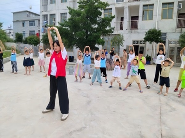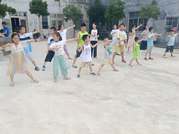 為提高小學(xué)生身體素質(zhì),增強(qiáng)抵抗力和免疫力,促進(jìn)身心健康,武昌理工學(xué)院“青春筑夢”通城志愿服務(wù)隊于2024年7月14日在通城縣馬港鎮(zhèn)推垅社區(qū)開展八段錦課外教學(xué)課程。