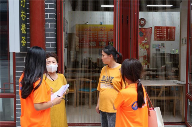 團(tuán)隊(duì)成員向?qū)m里街商戶發(fā)放調(diào)查問卷(張坤 攝)