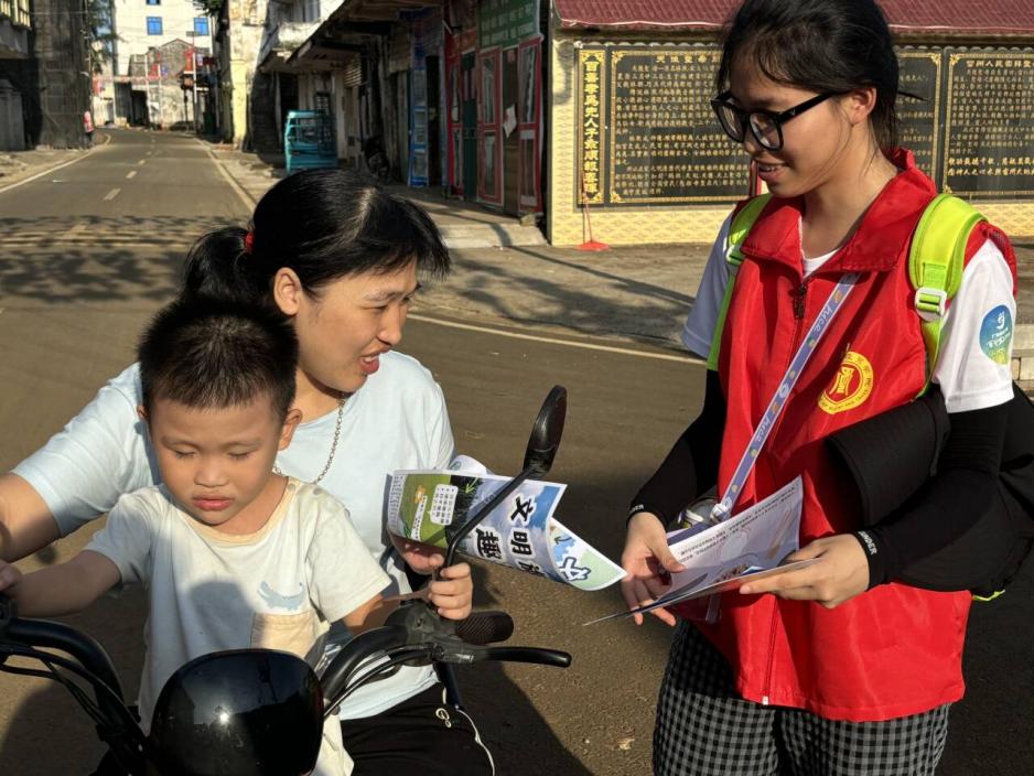 與此同時,團隊成員們還通過面對面講解等形式,向旅店旅館、集市商戶及當?shù)鼐用窠榻B“文明住宿”等相關(guān)內(nèi)容,希望群眾們能夠規(guī)范住宿行為,消除安全隱患,營造“文明、平安、和諧”的居住環(huán)境。