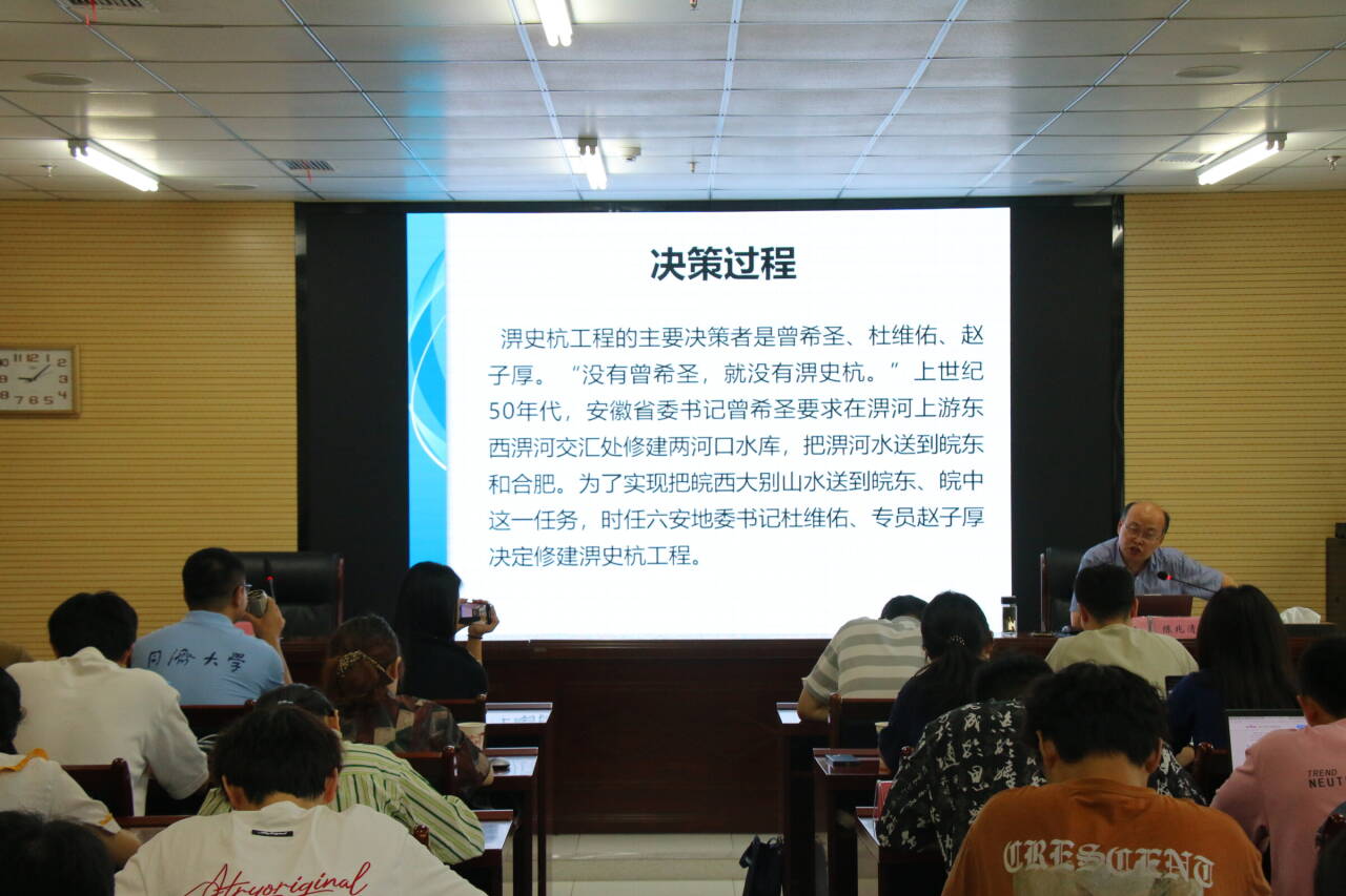 淠史杭水利工程,坐落于安徽省中西部與河南省東南部,被譽(yù)為“人間天河”,是新中國(guó)成立后興建的全國(guó)最大灌區(qū)之一,堪稱(chēng)水利史上的一座豐碑。本次培訓(xùn)課以其為主題,通過(guò)深入解讀其歷史背景、建設(shè)過(guò)程及區(qū)域發(fā)展影響,讓同學(xué)們們深刻感受到了這一偉大工程背后的艱辛與輝煌。
