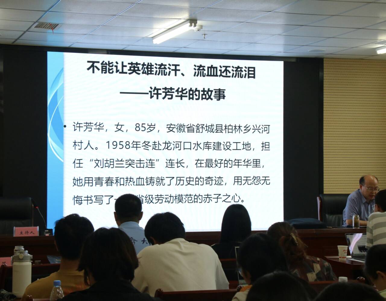 圖為陳兆清教授分享許芳華英雄的故事現(xiàn)場(chǎng)