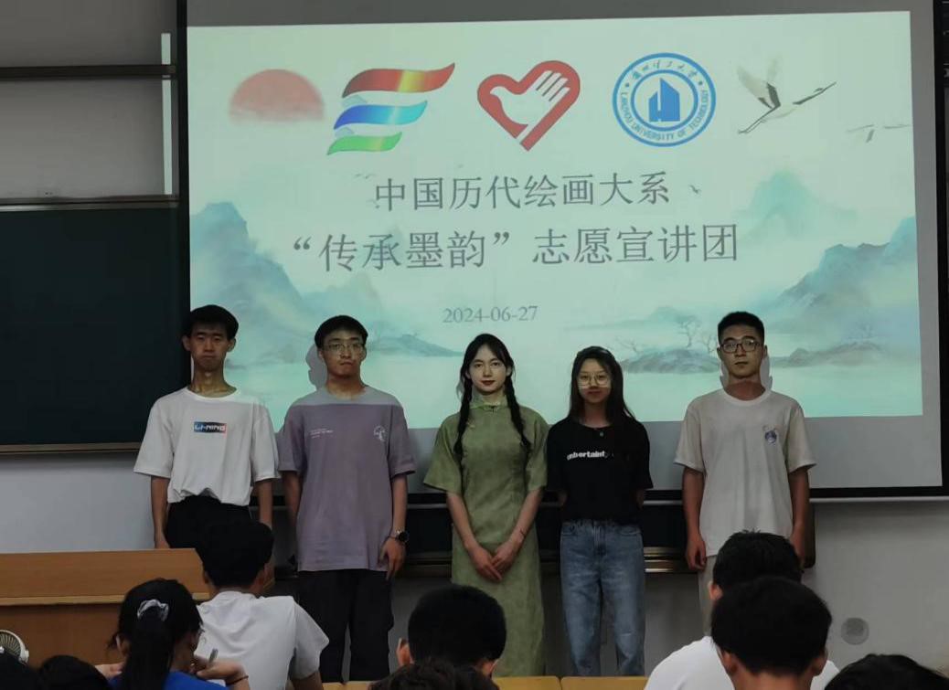 6月27日,宣傳團(tuán)組織同學(xué)們走進(jìn)校園,在教室舉行了豐富多彩的活動(dòng)。實(shí)踐團(tuán)精心準(zhǔn)備了優(yōu)秀的繪畫作品和生動(dòng)的 PPT,并通過現(xiàn)場(chǎng)講解與互動(dòng)的方式與同學(xué)們深入交流。宣講團(tuán)隊(duì)成員王婷婷運(yùn)用畫板和 PPT,詳盡分析了中國(guó)繪畫的種類與延展,并通過提問讓同學(xué)們表達(dá)對(duì)于中國(guó)繪畫發(fā)展的看法,使同學(xué)們得以浸潤(rùn)中華優(yōu)秀傳統(tǒng)文化精神,拉近了與傳統(tǒng)文化的距離。