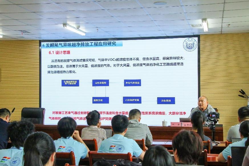 劉濤教授從惡臭的定義、惡臭種類出發(fā),向在實踐團成員介紹惡臭是什么,之后相繼介紹惡臭與VOCs的控制要求、VOCs與惡臭的控制方法、發(fā)酵廢氣的特征與控制方案、吸附冷凝回收技術(shù)工程應(yīng)用、循環(huán)干燥技術(shù)工程應(yīng)用、發(fā)酵尾氣異味超凈排放工程研究等多個模塊的學(xué)習(xí)內(nèi)容。
