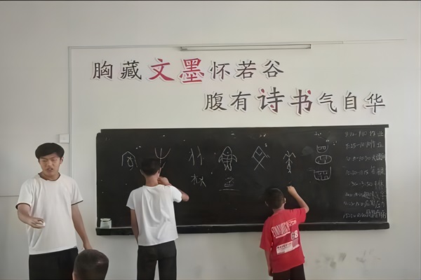 2024年七月15日,在通城縣治全村開展社會(huì)實(shí)踐活動(dòng)的志愿者團(tuán)隊(duì)在治全村村委會(huì)提供的教室里給小朋友們上了一節(jié)生動(dòng)的趣味漢字課,為小朋友們講述漢字的起源,拓展孩子們的視野。