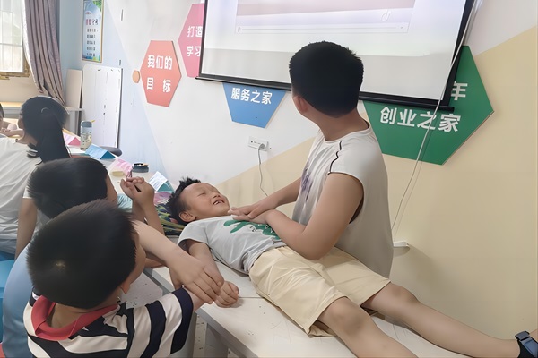 為了讓學(xué)生們積極參與課堂活動,更直觀地掌握救援技能,課程最后安排了角色扮演環(huán)節(jié)。邀請兩位學(xué)生進行角色扮演,模擬溺水事故發(fā)生后采用心肺復(fù)蘇法的救援場景。心肺復(fù)蘇法科普視頻播放完畢后,在志愿者指導(dǎo)下,學(xué)生們學(xué)習(xí)了如何進行心肺復(fù)蘇等急救措施,并通過實際操作加深了對救援流程的理解和掌握,加深對防溺水知識的理解記憶。
