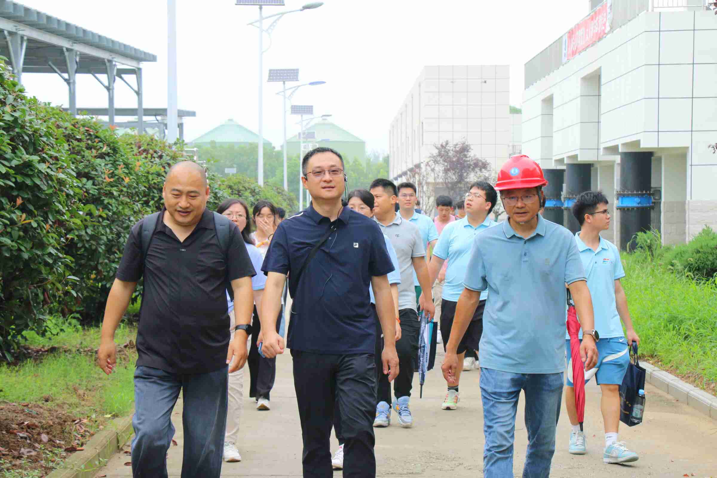 圖為城北污水凈化廠廠長(zhǎng)鄭文勝(右一)帶領(lǐng)同學(xué)們參觀城北污水凈化廠廠長(zhǎng)。通訊員 鄧以諾 攝