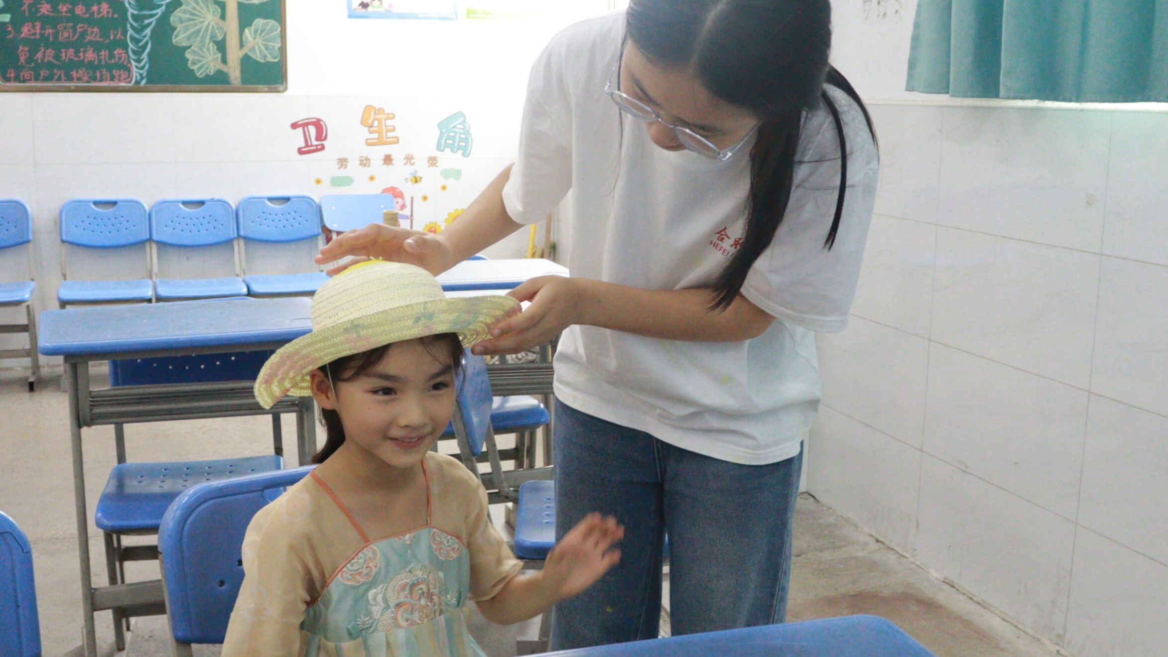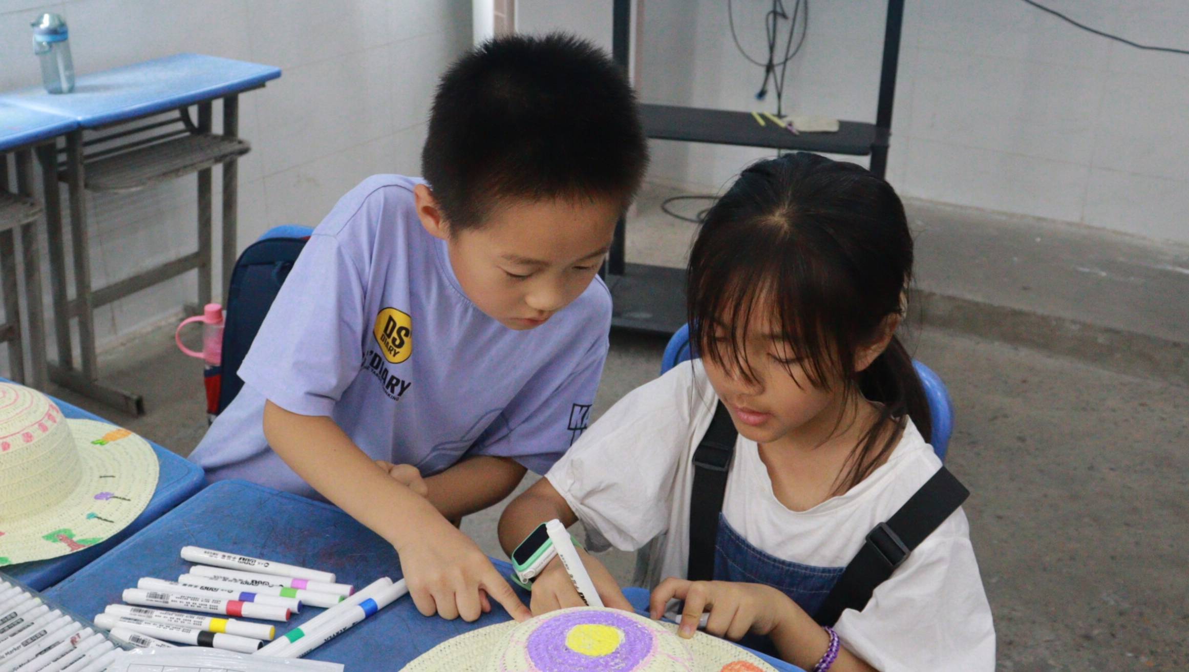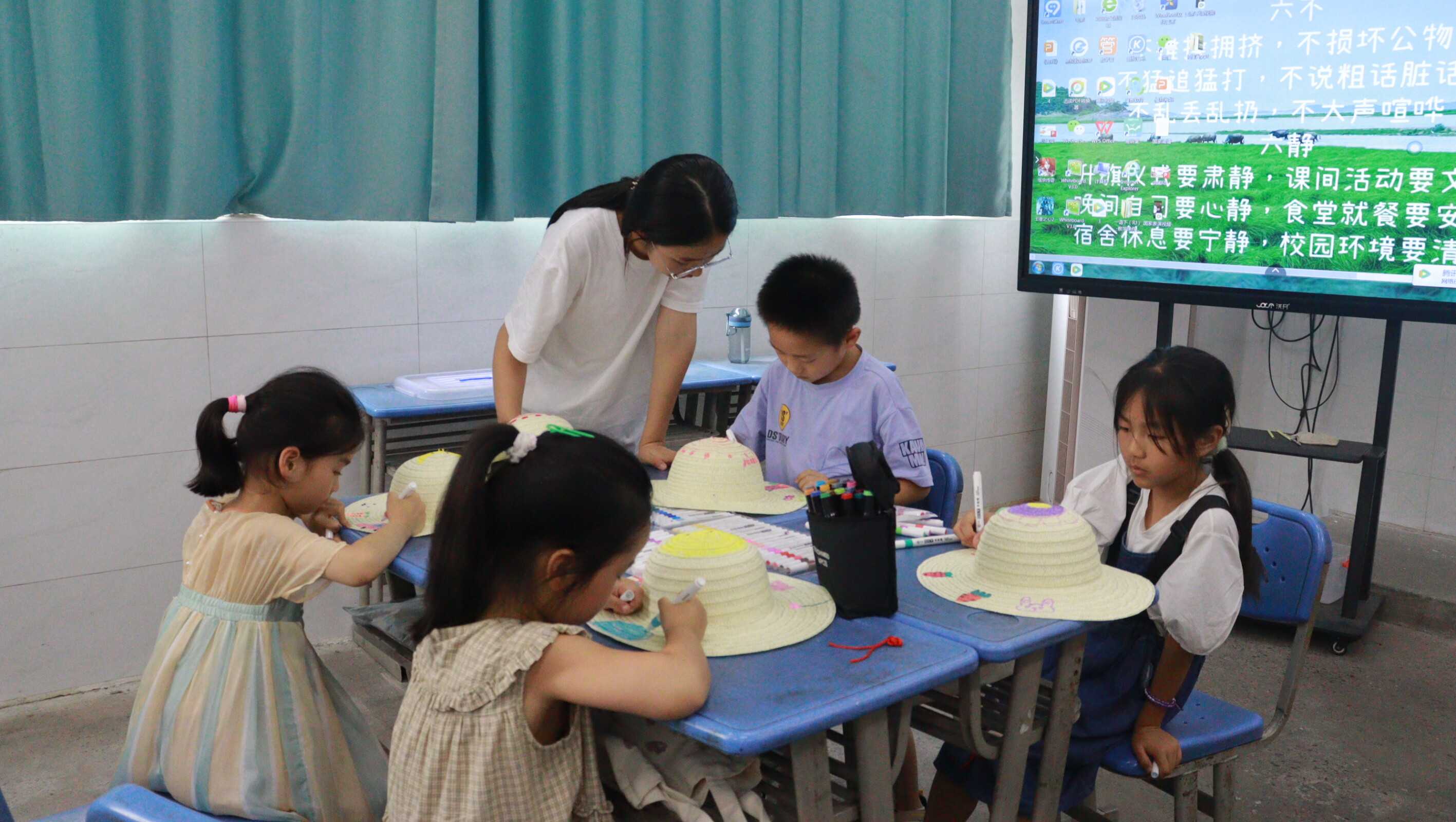 2024年7月6日,合肥大學(xué)教育學(xué)院“同筑鄉(xiāng)村夢,共‘育’振興果”志愿服務(wù)隊在合肥市小廟鎮(zhèn)蜀山行知學(xué)校開展了暑期“三下鄉(xiāng)”社會實踐活動。美育是審美教學(xué)與美感教學(xué)的結(jié)合,是新時代培養(yǎng)德智體美勞全面發(fā)展的社會主義建設(shè)者和接班人的重要著力點,其中藝術(shù)是美育最集中最典型的形態(tài)。本次課程,教師魯?shù)つ菀悦烙鳛榍腥朦c給小朋友們帶來了一節(jié)妙趣橫生的草帽繪制藝術(shù)。