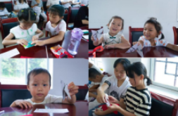 紡織服裝學(xué)院志愿者根據(jù)所學(xué)專業(yè)知識,手把手帶領(lǐng)留守孩童學(xué)習(xí)手工花制作和彩紙折蝴蝶技巧。小朋友各自挑選喜歡的彩紙和制花工具,在志愿者耐心的上百次重復(fù)動(dòng)作教授中反復(fù)學(xué)習(xí)手工技巧,遇到困難及時(shí)向志愿者請教,也熱情給其他孩子提供幫助,在興趣中培養(yǎng)動(dòng)手能力,在合作中增進(jìn)情感交流。