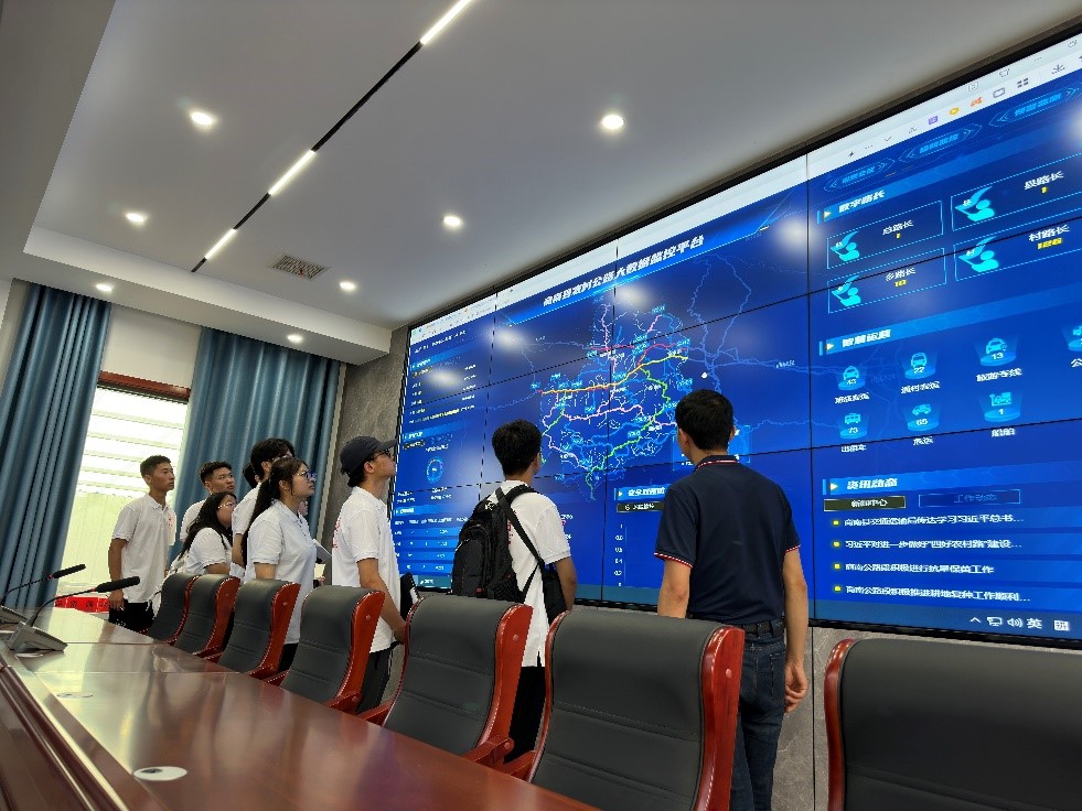 座談結(jié)束后,實(shí)踐隊(duì)員前往觀摩商南縣農(nóng)村公路大數(shù)據(jù)監(jiān)控平臺(tái),觀看“建設(shè)四好農(nóng)村路,打通鄉(xiāng)村振興快車道”紀(jì)錄片,對商南縣路網(wǎng)建設(shè)情況以及公路的數(shù)字化管理有了更加直觀的認(rèn)識(shí)和更深刻的理解。
