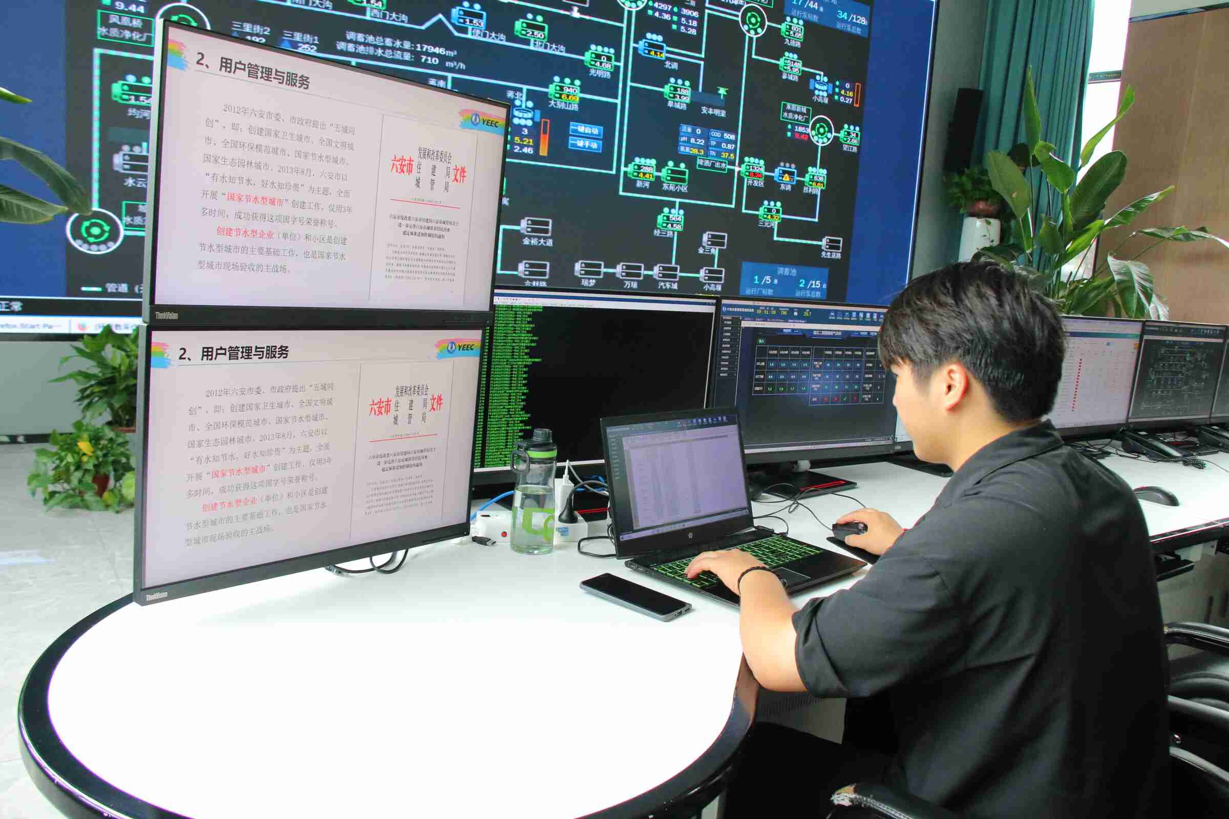 圖為工作人員在操作智慧水務(wù)中控系統(tǒng)