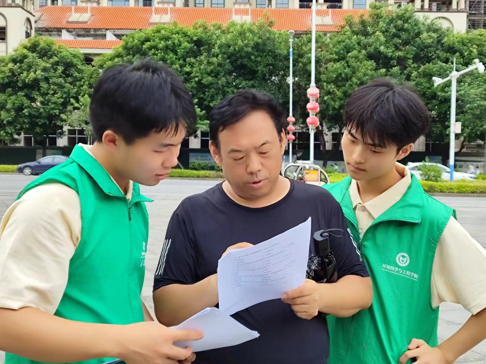 圖為實踐團成員與市民交流并發(fā)放調(diào)查問卷